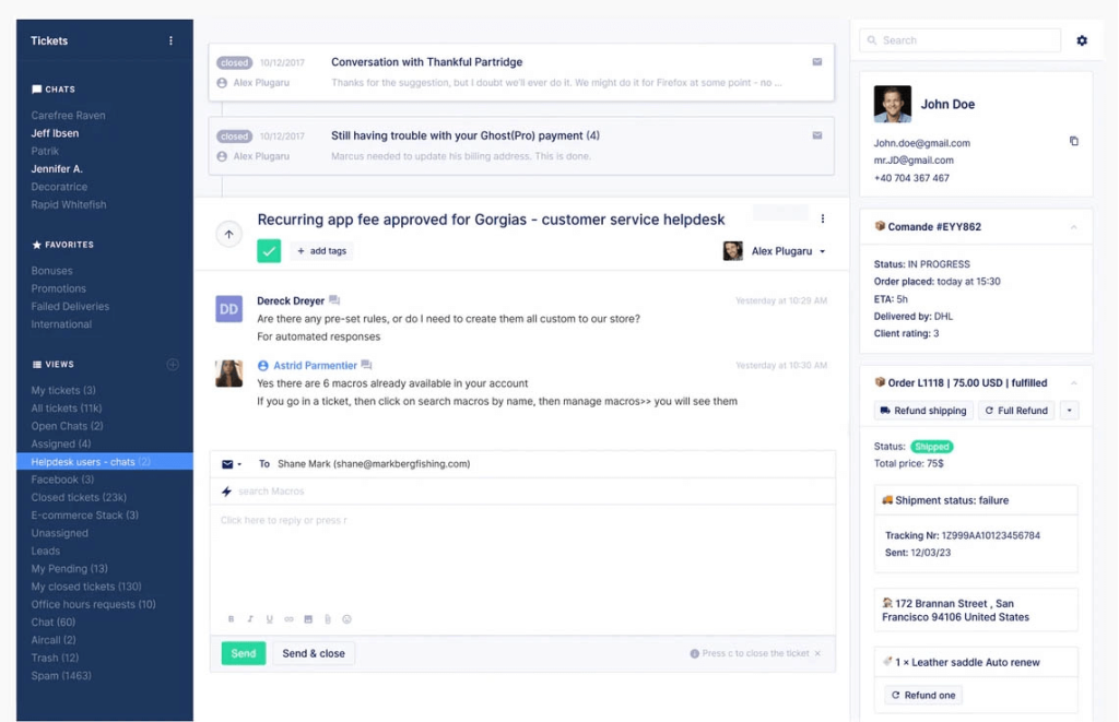What I really love for e-commerce is how the Shopify integration works right out of the box. Agents can see the customer’s purchase history, order status, and even process actions like refunds or cancellations directly within Help Scout. This means way less tab-switching, which speeds up response times dramatically. It’s built for teams that prioritize customer happiness and a clean, collaborative workspace.